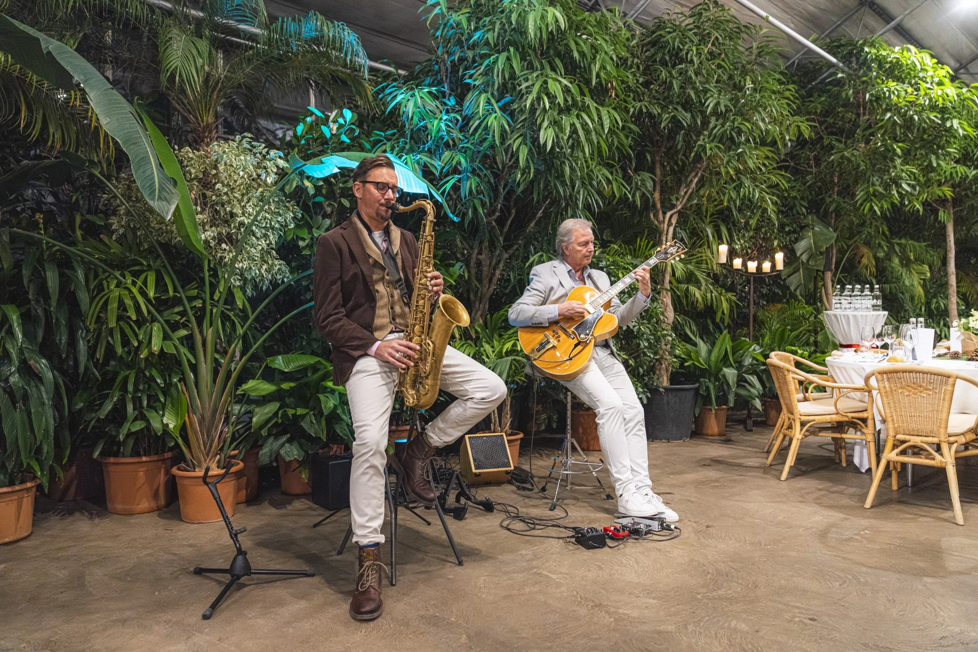 Das Jazz Duo passt sich perfekt der Gesellschaft an. Es sorgt dafür, dass nicht gähnende Leere herrscht, falls mal der Gesprächsstoff ausgeht. Zudem sorgt eine permanente und ruhige Hintergrundmusik für ein angenehmes Klima im Raum.